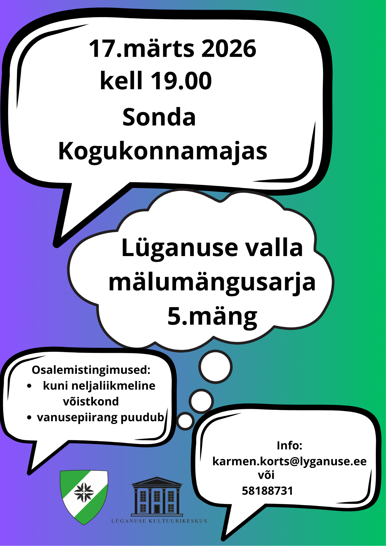 - 03.03.2026 Lüganuse Valla Noortekeskus kutsub tööandjaid pakkuma malevanoortele töökogemust!