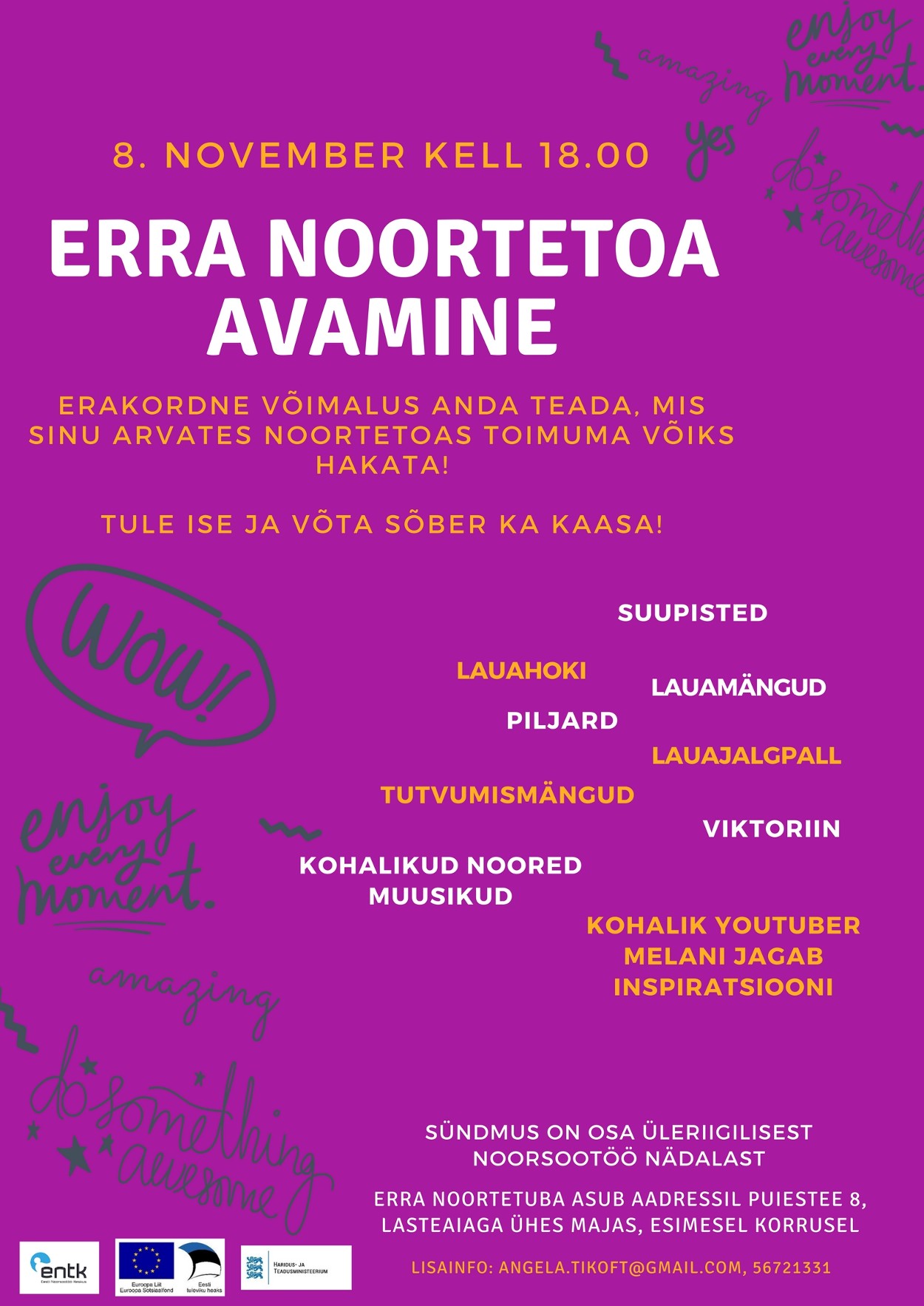 Ürituse toimumist rahastatakse haridus- ja teadusministri kinnitatud ning Eesti Noorsootöö Keskuse poolt elluviidava Euroopa Sotsiaalfondi kaasrahastatud programmi „Tõrjutusriskis noorte kaasamine ja noorte tööhõivevalmiduse parandamine" kirjeldatud tegevuste raames.
