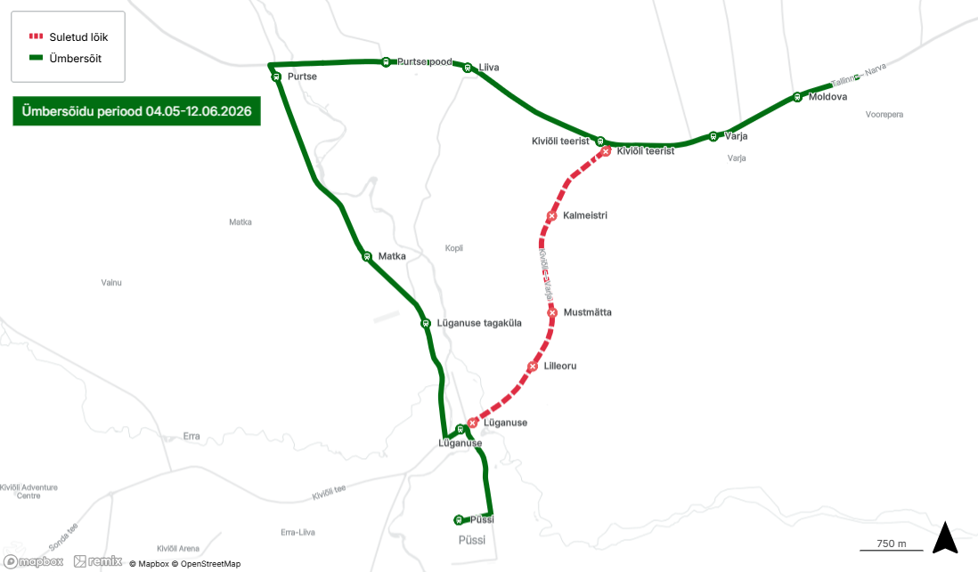 Riigitee nr 34 sulgemise ajal ehitustöödeks 4. maist kuni 12. juunini maakonna bussliinid ei teeninda KALMEISTRI, MUSTMÄTTA, LILLEORU ja LÜGANUSE (Varja suund) peatuseid.