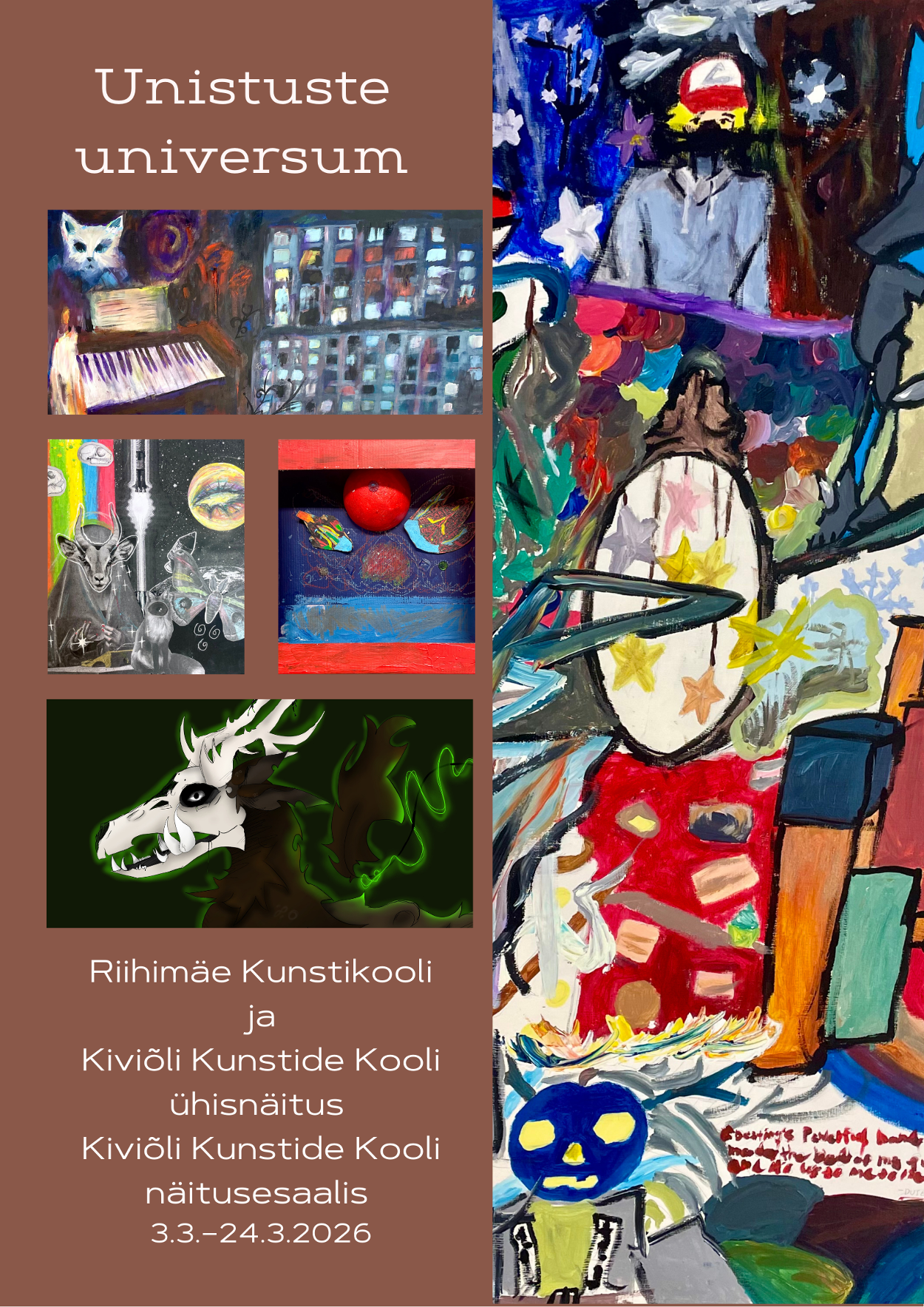 Iga töö annab vaatajale võimaluse kogeda nooruse vabadust ja piiritut kujutlusvõimet. Unistuste universum on maailm, kus fantaasia annab kunstile elu.